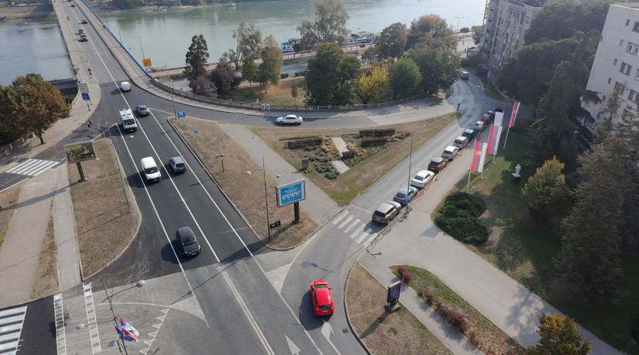 Тренутно се изводе радови на обележавању саобраћајне сигнализацијe на Тргу незнаног јунака, код зграде ДТД, а у поподневим часовима биће успостављен редован саобраћај и омогућен силазак са Варадинског моста на Београдски кеј.