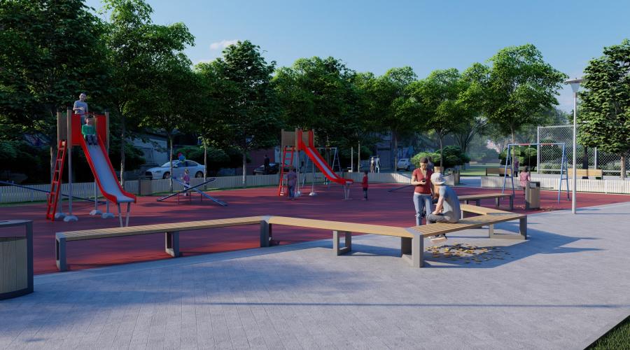 Зеленило и новопостављени урбани мобилијар допринеће естетском утиску предметног простора, а разноврсни садржаји биће на располагању деци и омладини.